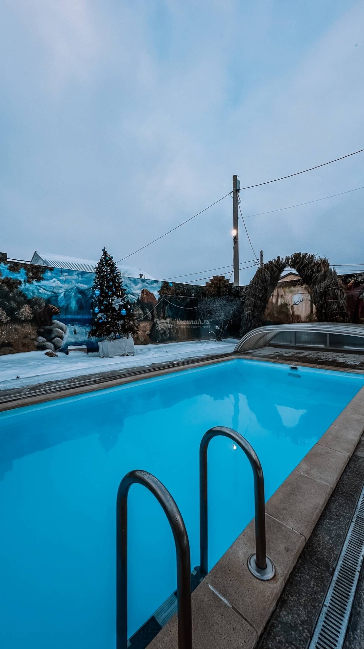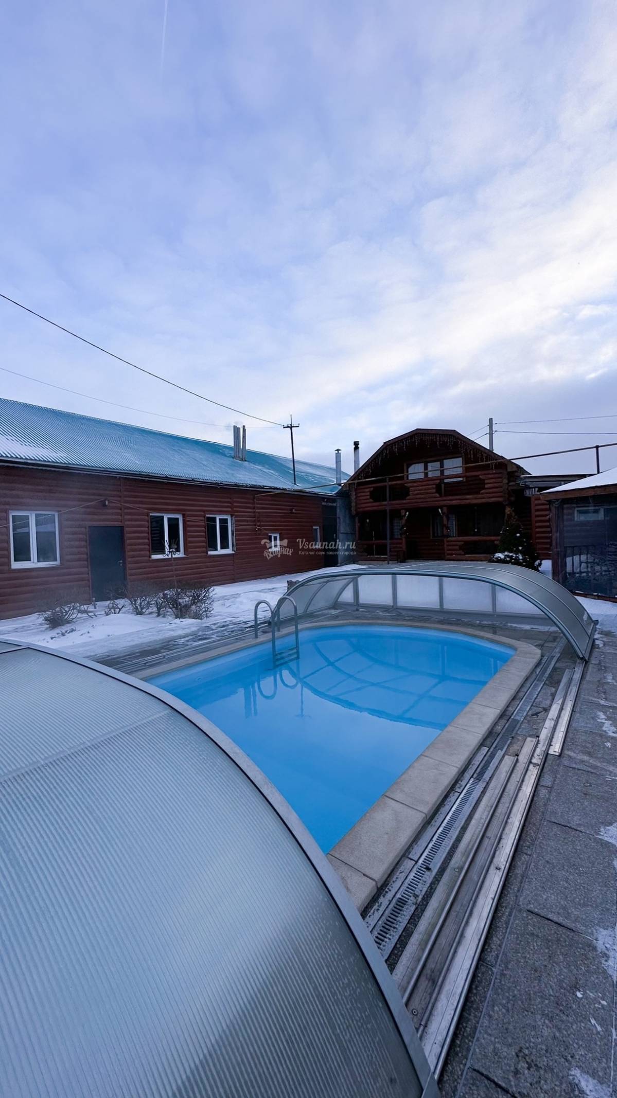 Очень хорошая баня. Бассейн на улице теплый в любой мороз)